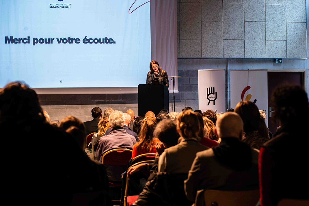 Merci à Wallonie-Bruxelles Enseignement, et aux partenaires. Merci aux étudiant·es et pédagogues de l’Athenée Royal d’Evere, qui ont assuré l’accueil et le service pour cet événement. Merci aux équipes organisatrices, et aux étudiant·es de l’INSAS pour leur contribution au service, photographie, captation et performances.